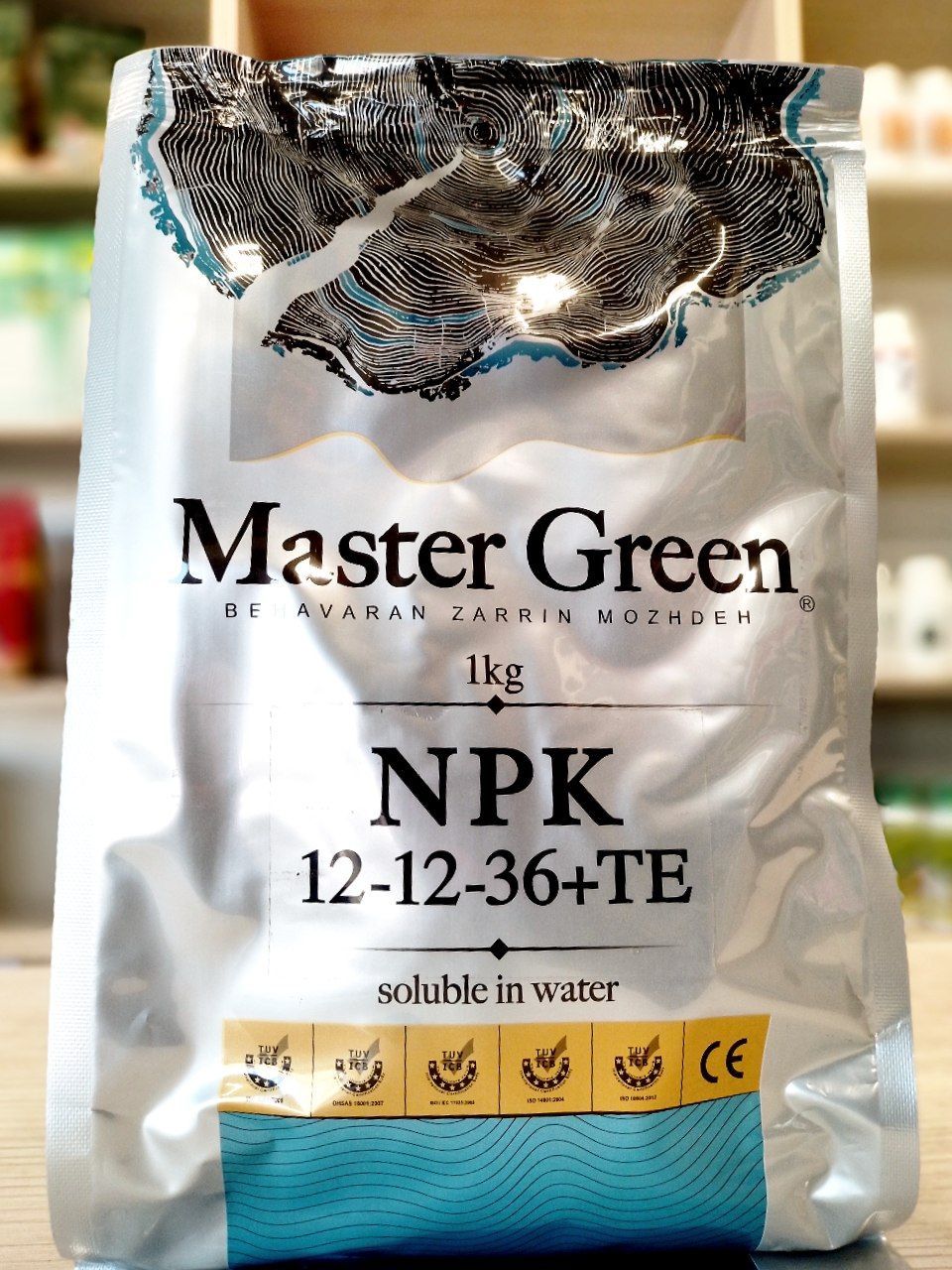 ✅کود مستر گرین 36_12_12 ✅با آنالیز نیتروژن %12_ فسفر %12_پتاسیم%36_ آهن%0/01_مس%0/01_منگنز%0/01_ روی%0/01_بور%0/01_حداقل حلالیت250گرم بر لیتر (واردات بهاوران زرین مژده )